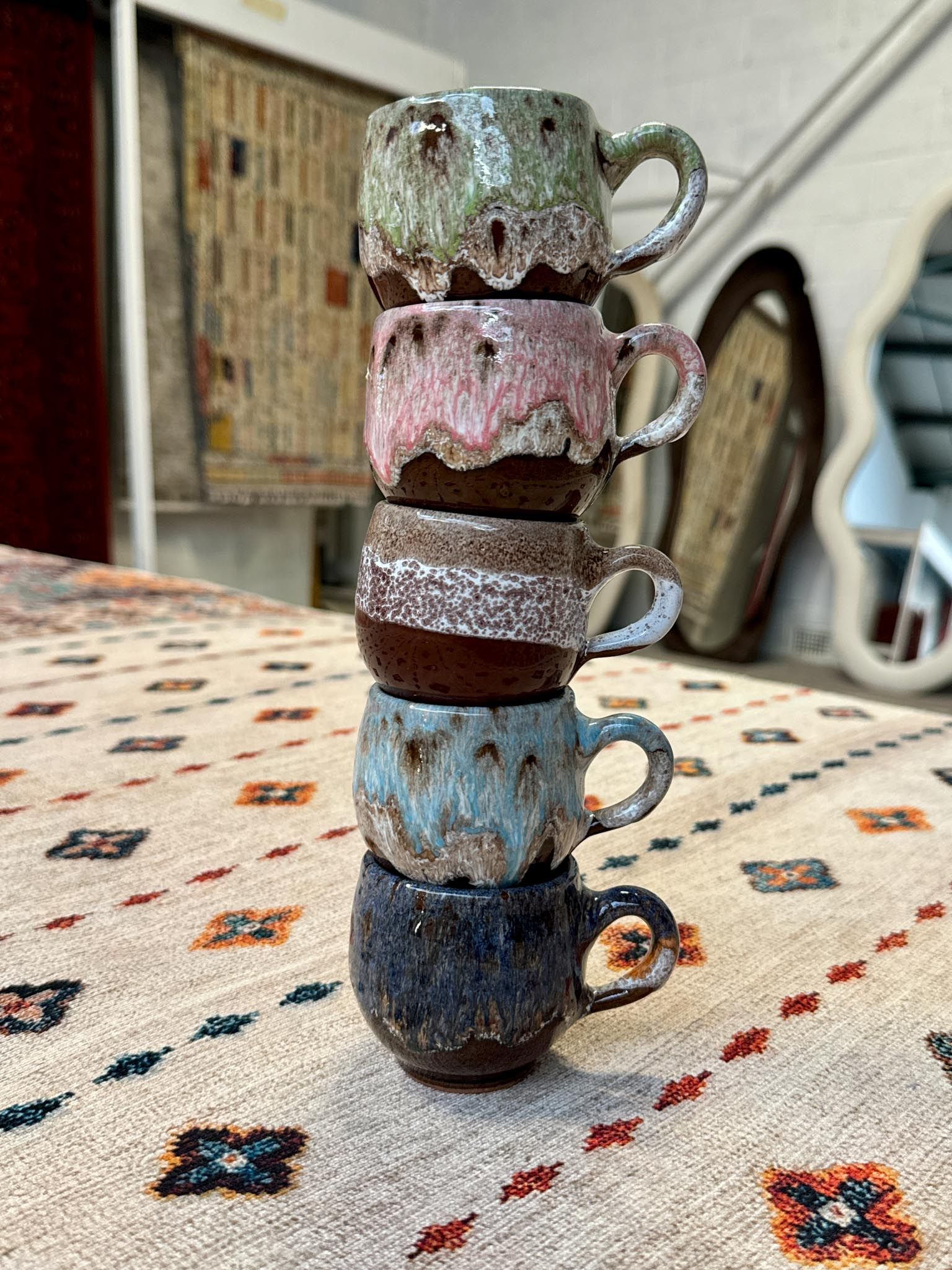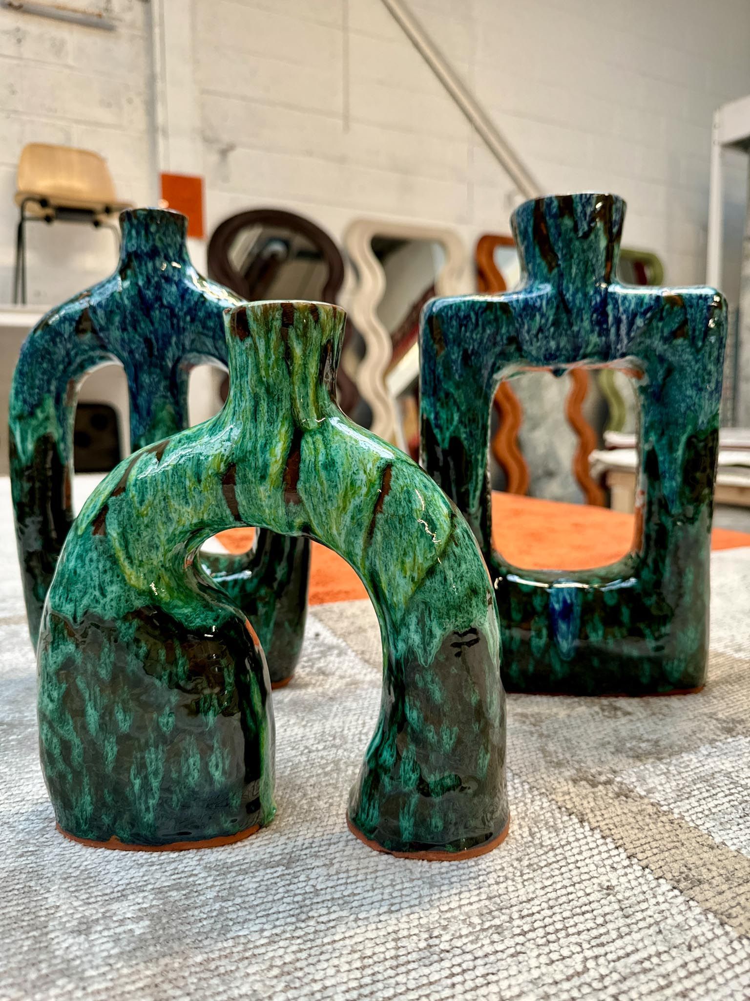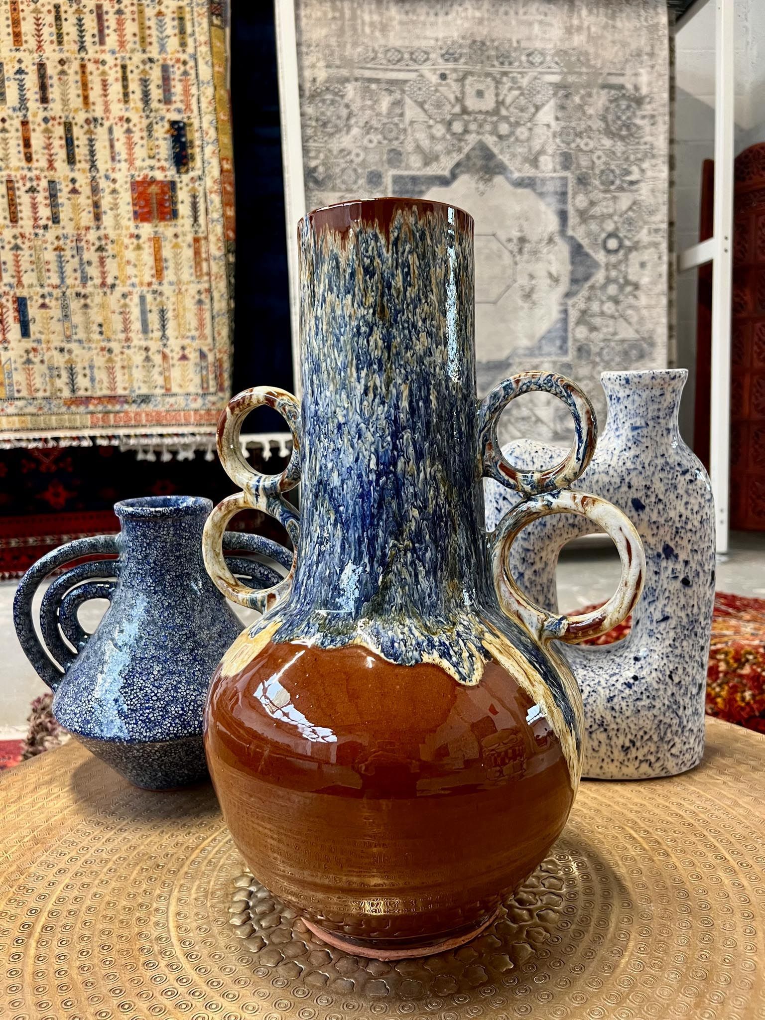 Each piece in our ceramics collection is handmade in the Atlas Mountains using natural glazes and dyes, making every item unique. Our range includes vases, plates, candle holders, mugs, espresso cups, and more, perfect for adding an artisanal touch to your home.